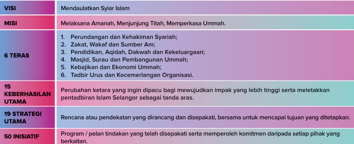 Jadual 1 : Ringkasan Hala Tuju Kelestarian Hal Ehwal Islam Selangor 2025-2030