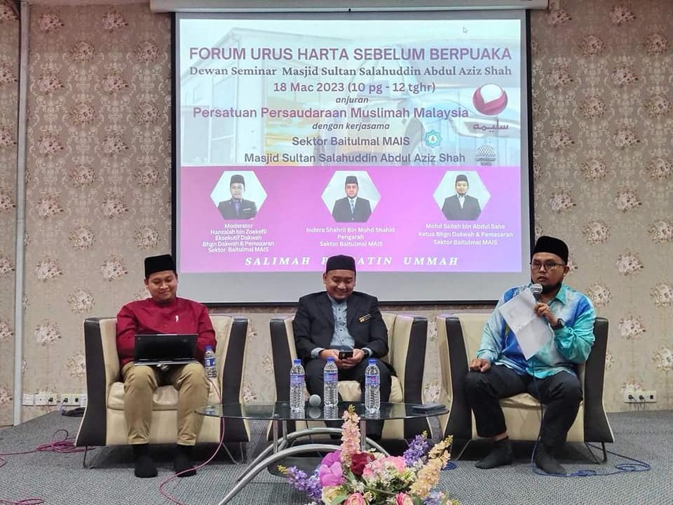 18 Mac 2023 – Telah berlangsungnya satu forum yang bertajuk Urus Harta Sebelum Berpuaka anjuran Persatuan Persaudaraan Muslimah Malaysia (SALIMAH) dengan kerjasam Baitulmal MAIS & Masjid Sultan Salahuddin Abdul Aziz Shah bertempat di Dewan Seminar Masjid Sultan Salahuddin Abdul Aziz Shah, Shah Alam.