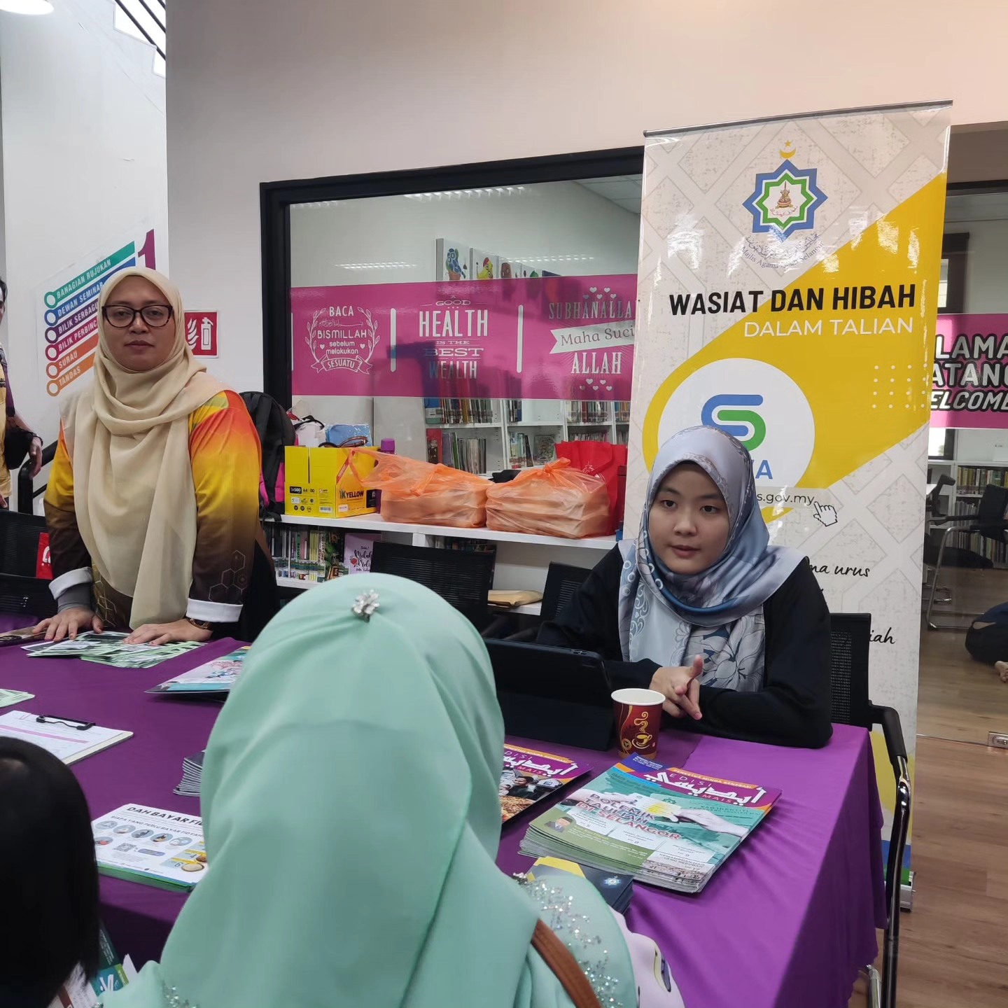 KUALA LANGAT, 25 Mei – Pihak MAIS melalui unit Baitulmal Daerah Kuala Langat telah dipelawa untuk membuka ‘booth’ pemeran di Perpustakaan Awam Daerah Kuala Langat bersempena Program Hari Terbuka.