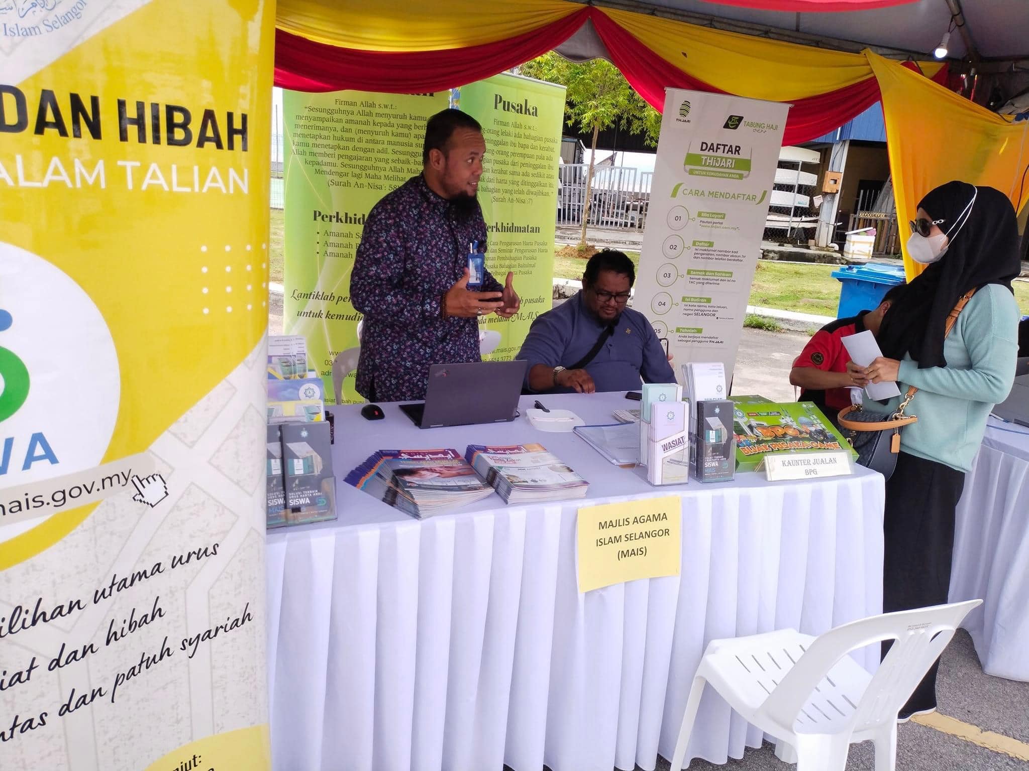 Alhamdulillah, kaunter Baitulmal MAIS dibuka kepada masyarakat yang hadir bagi berkongsi maklumat berkaitan wasiat, hibah, faraid dan lain-lain perkhidmatan MAIS.