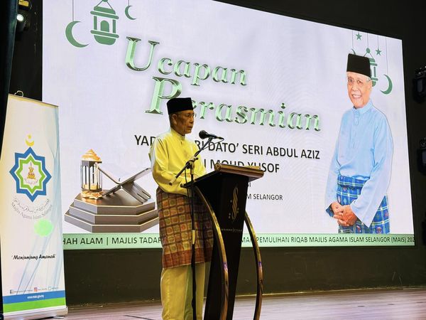 Penyampaian sumbangan disempurnakan oleh YAD Tan Sri Dato’ Seri Abdul Aziz Mohd Yusof, Pengerusi MAIS pada Majlis Tadarus dan Iftar Perdana Rumah Pemulihan Riqab Tahun 2024 di sini hari ini.