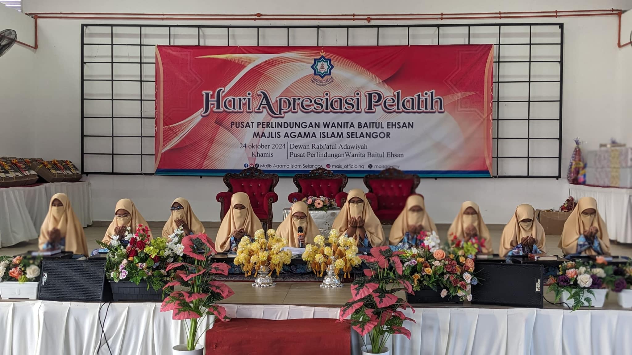 Bagi memberikan penghargaan kepada pelatih-pelatih, Pusat Perlindungan Baitul Ehsan MAIS hari ini menganjurkan Majlis Apresiasi Pelatih Baitul Ehsan 2024 yang merupakan salah satu program besar tahunan bertujuan memberikan penghargaan kepada pelatih-pelatih yang telah berjaya menjalani proses pemulihan dalam bidang akademik, kemahiran dan fardhu ain bermula Oktober 2023 hingga September 2024.