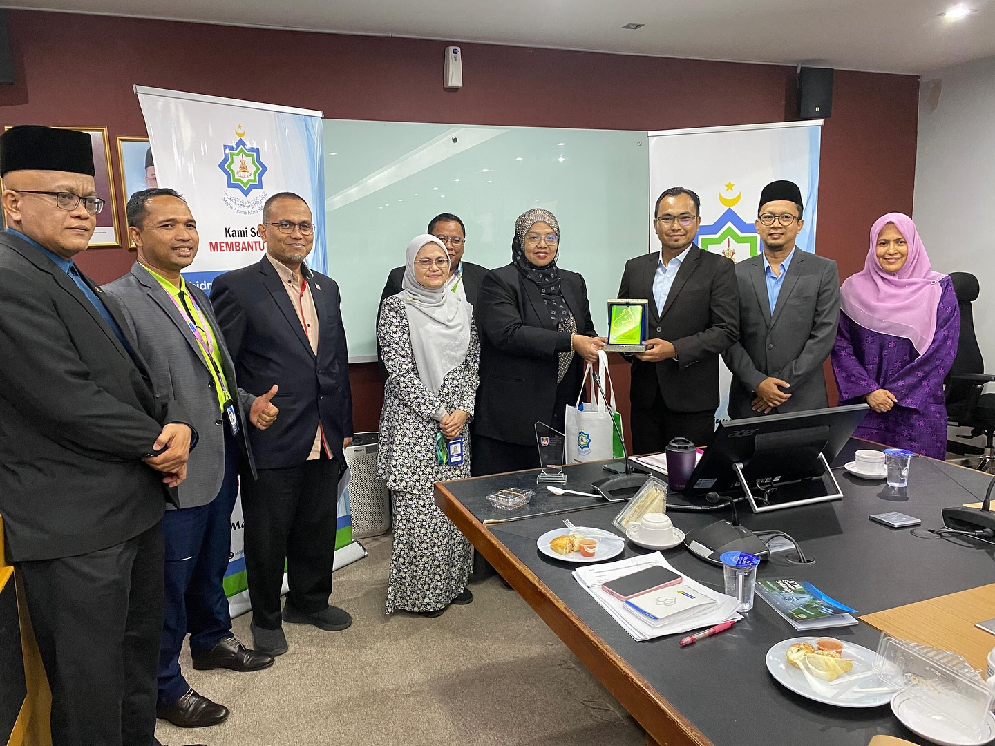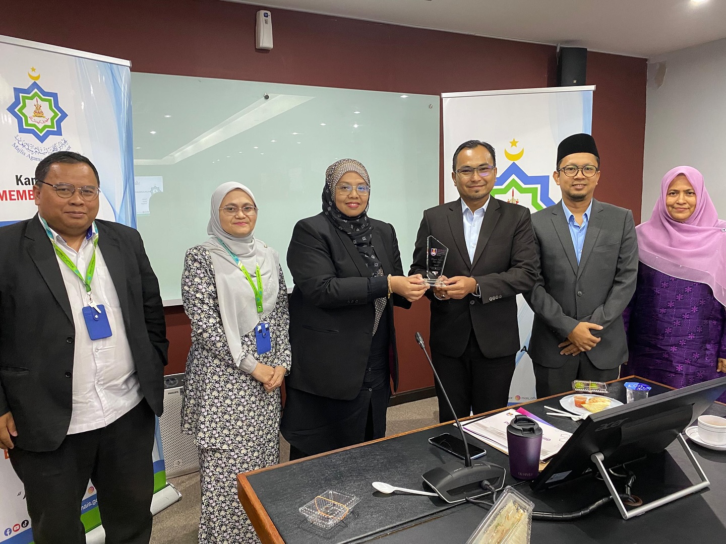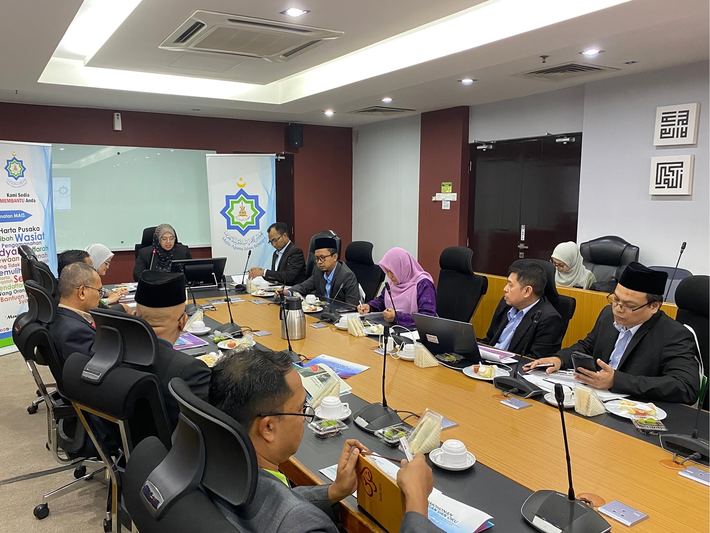 Delegasi seramai tujuh orang diketuai oleh YBrs. Profesor Dr Ahmad Taufek Abdul Rahman, Rektor UiTM Cawangan Selangor disambut mesra oleh Puan Hajah Nurhani Salwa Jamaluddin, Timbalan Setiausaha (Dasar&Pengurusan) MAIS.