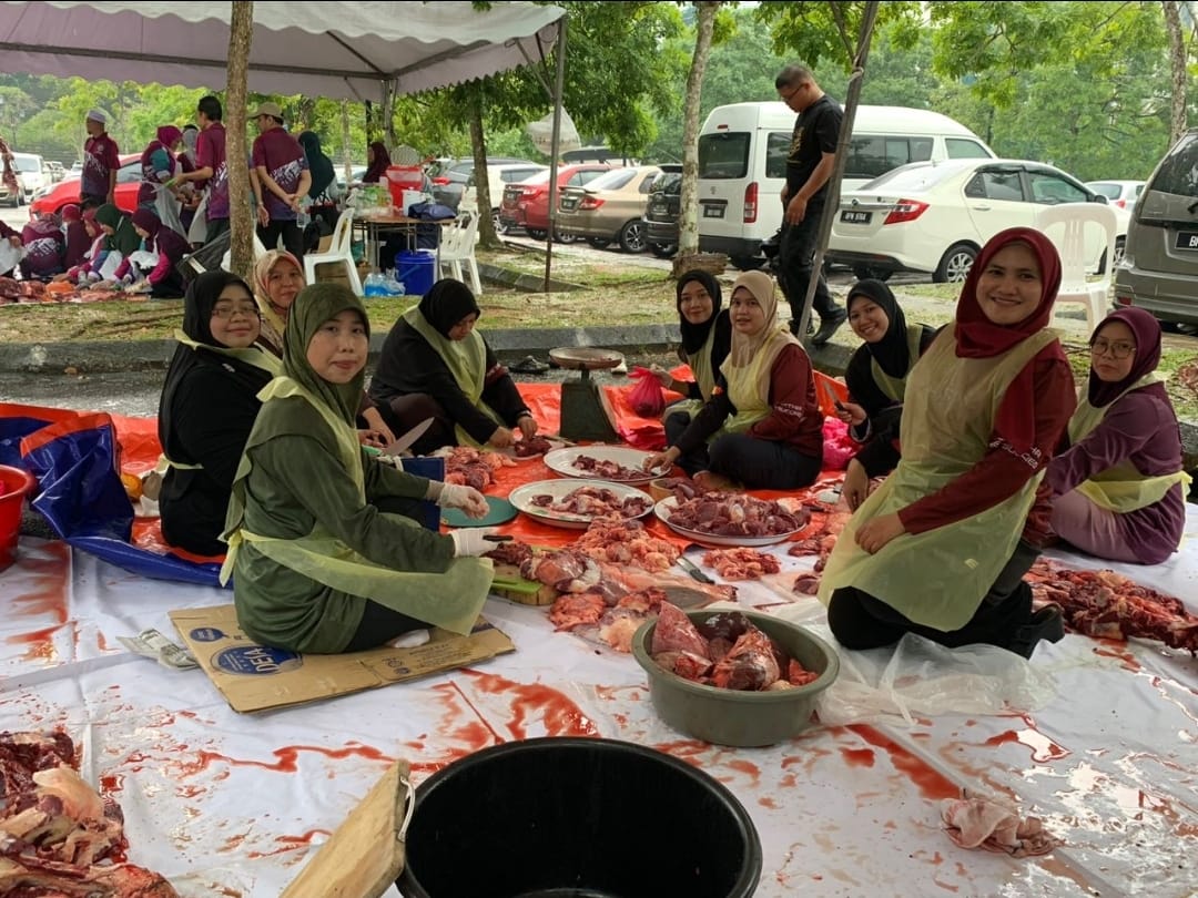 Sebanyak 10 ekor lembu dikorbankan dan dagingnya diagihkan kepada golongan asnaf yang berhampiran dan warga kerja di Bangunan Sultan Idris Shah(BSIS).