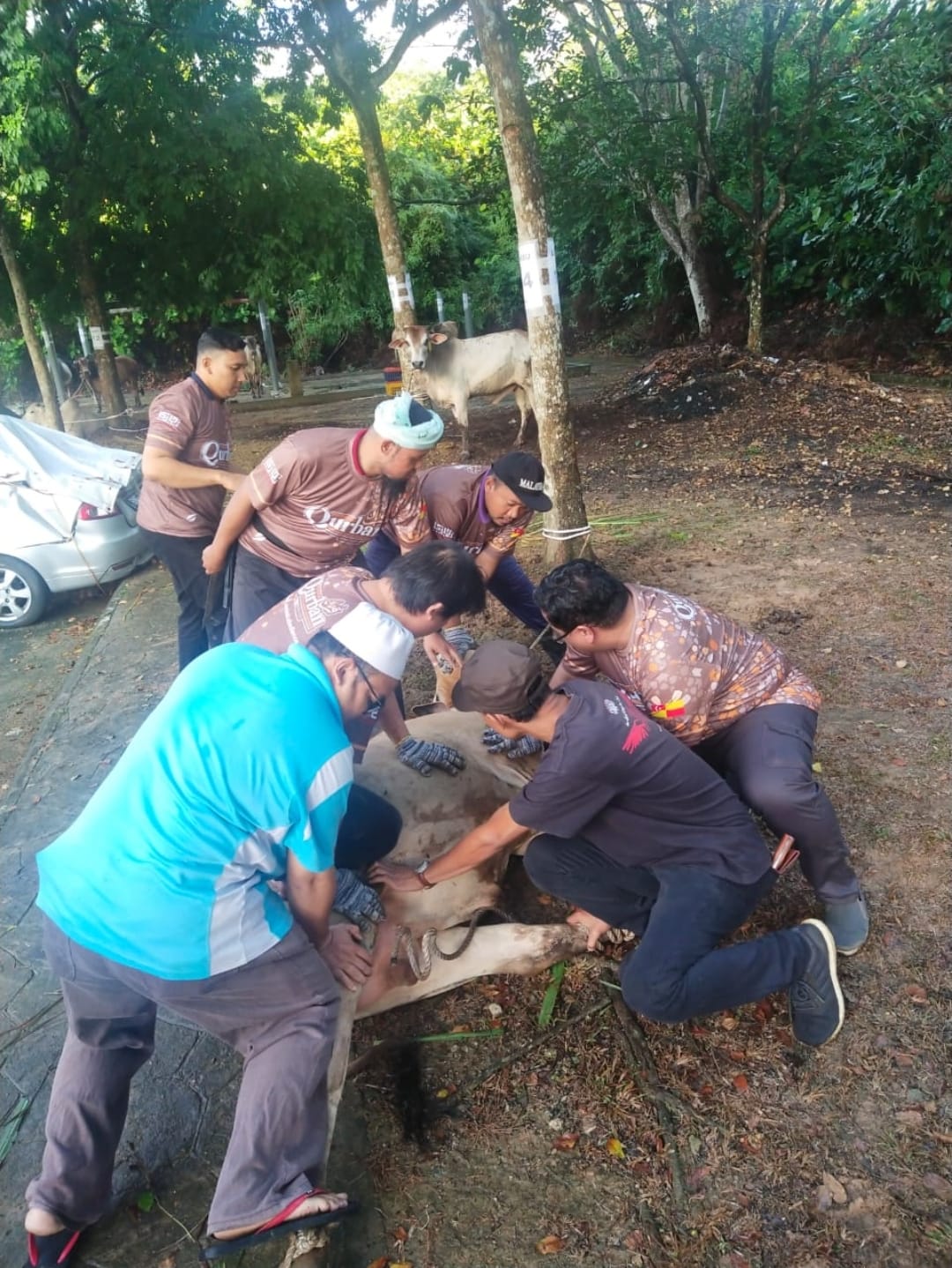 Sebanyak 17 ekor lembu dikorbankan dan dagingnya diagihkan kepada golongan asnaf yang berhampiran dan warga kerja di Bangunan Sultan Idris Shah(BSIS).