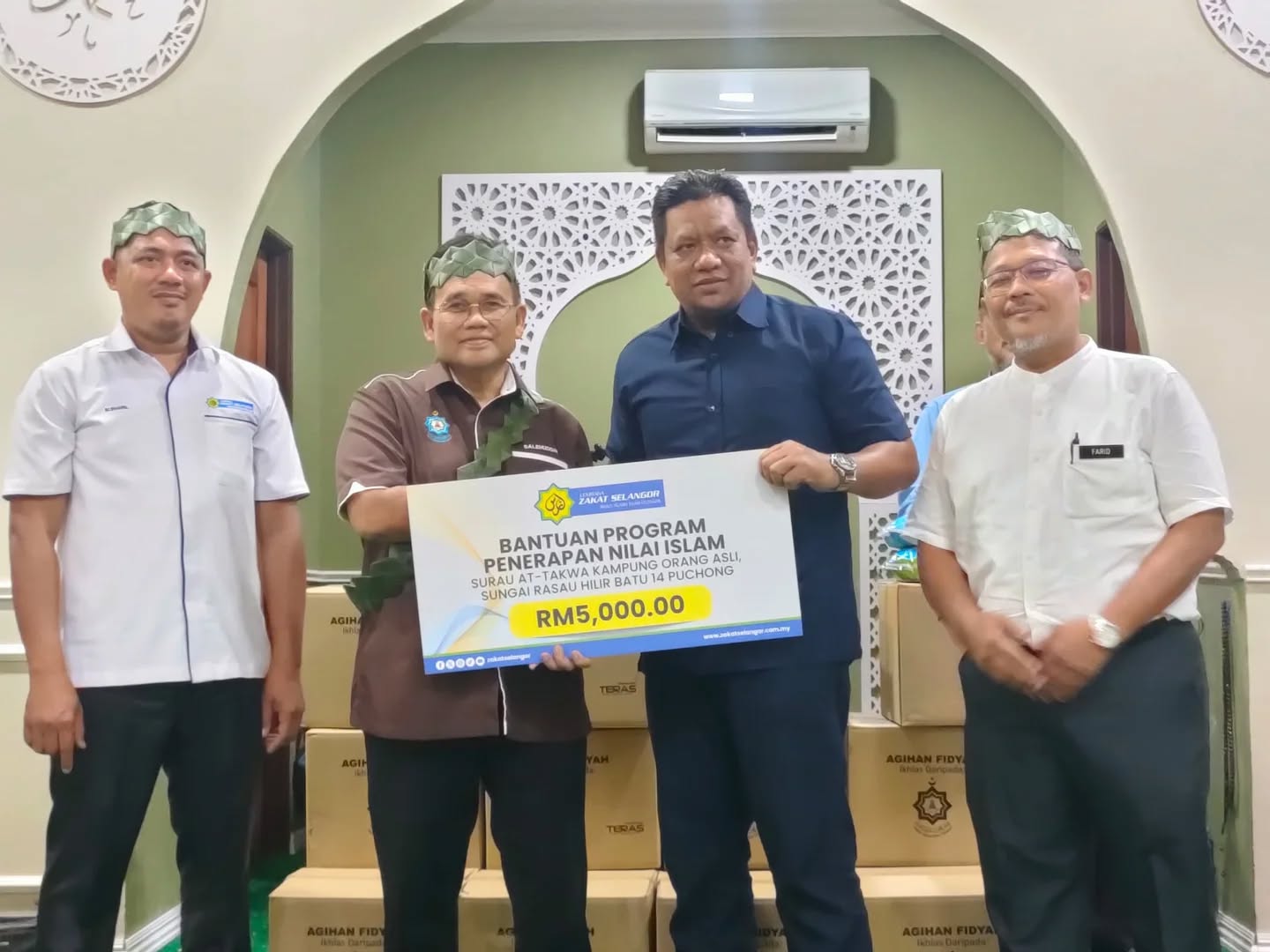 Dalam lawatan di kampong tersebut, Pengerusi MAIS turut menyampaikan sumbangan kepada institusi agama melalui peruntukan zakat. Antara institusi agama yang menerima sumbangan ialah Sekolah Kebangsaan Taman Universiti dan Surau At Taqwa, Kampong Orang Asli Sg Rasau Hilir.