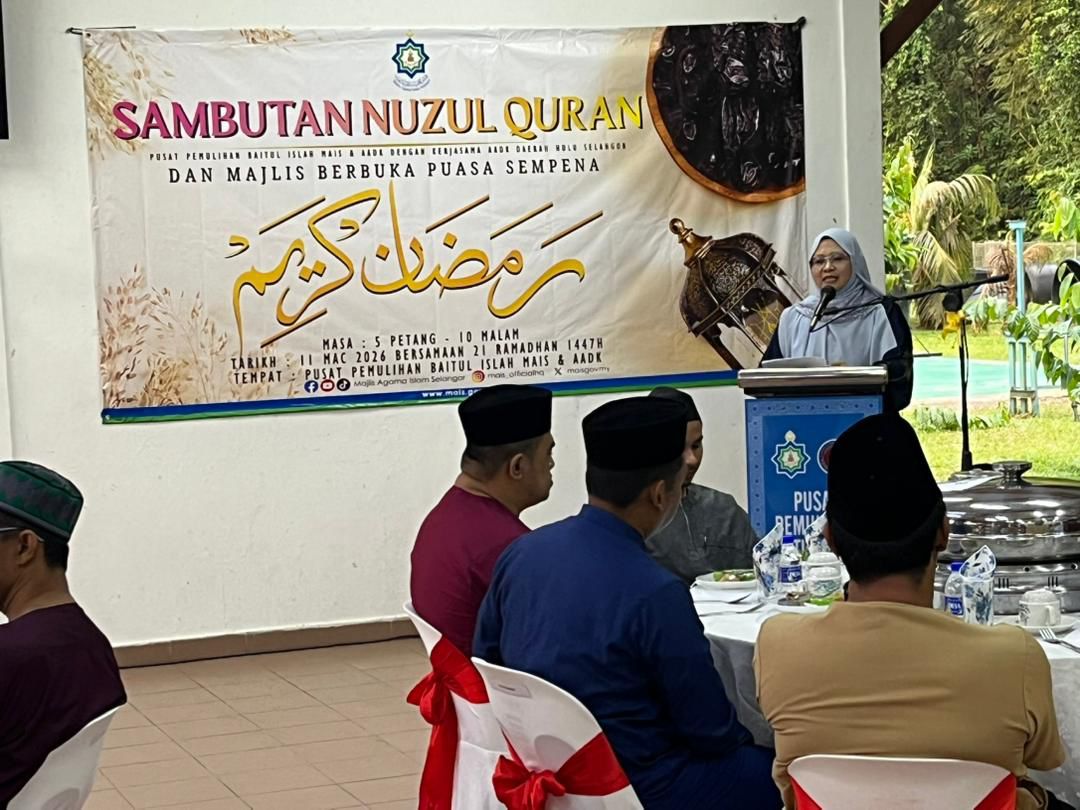 HULU SELANGOR, 17 Mac 2026 — Majlis Agama Islam Selangor (MAIS) melalui Pusat Pemulihan Baitul Islah di bawah seliaan Majlis Agama Islam Selangor (MAIS) telah menganjurkan Majlis Sambutan Nuzul Al-Quran Tahun 2026/1447H dan iftar bersama pelatih dengan kerjasama Agensi Antidadah Kebangsaan (AADK) pada 11 Mac lepas.