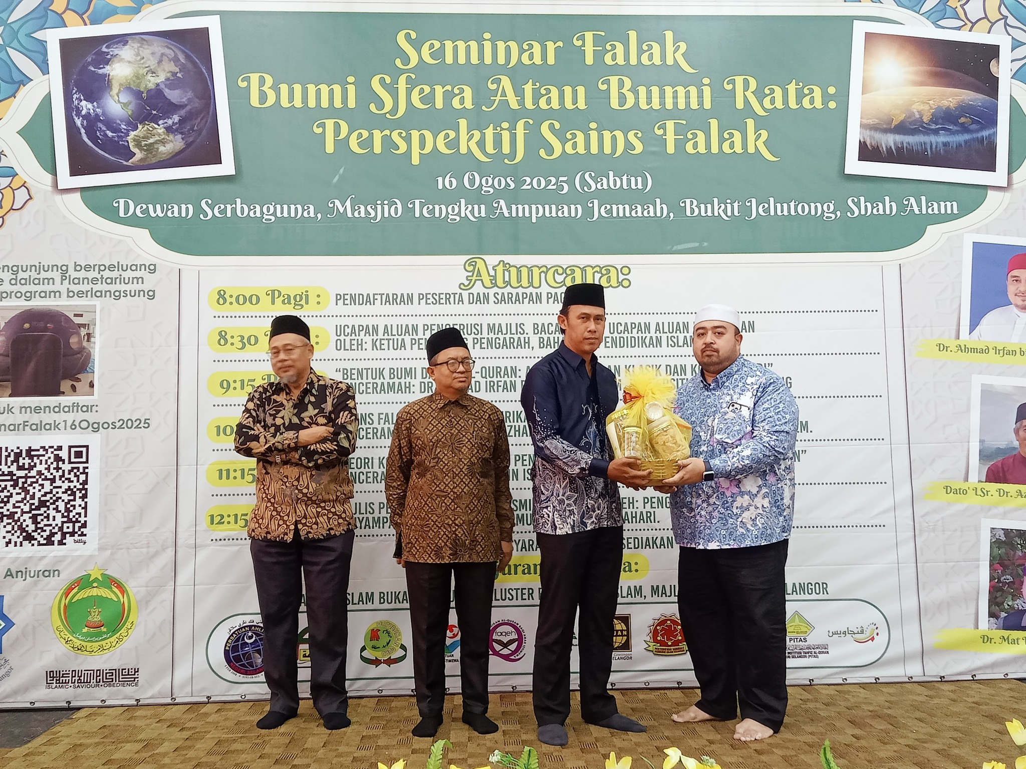 SHAH ALAM, 16 Ogos – Setiausaha Majlis Agama Islam Selangor (MAIS), Tuan Haji Mohd Sabirin bin Mohd Sarbini hari ini telah menyempurnakan Majlis Perasmian Penutup Seminar Falak Bumi Sfera atau Bumi Rata : Perspektif Sains Falak di Dewan Masjid Tengku Ampuan Jemaah, Shah Alam.