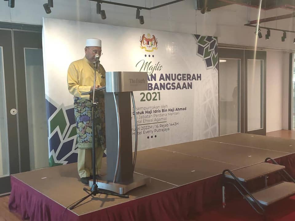 Majlis penyampaian anugerah hari ini adalah bersempena Sambutan Bulan Zakat Kebangsaan 2021 anjuran Jabatan Wakaf, Zakat & Haji (JAWHAR).